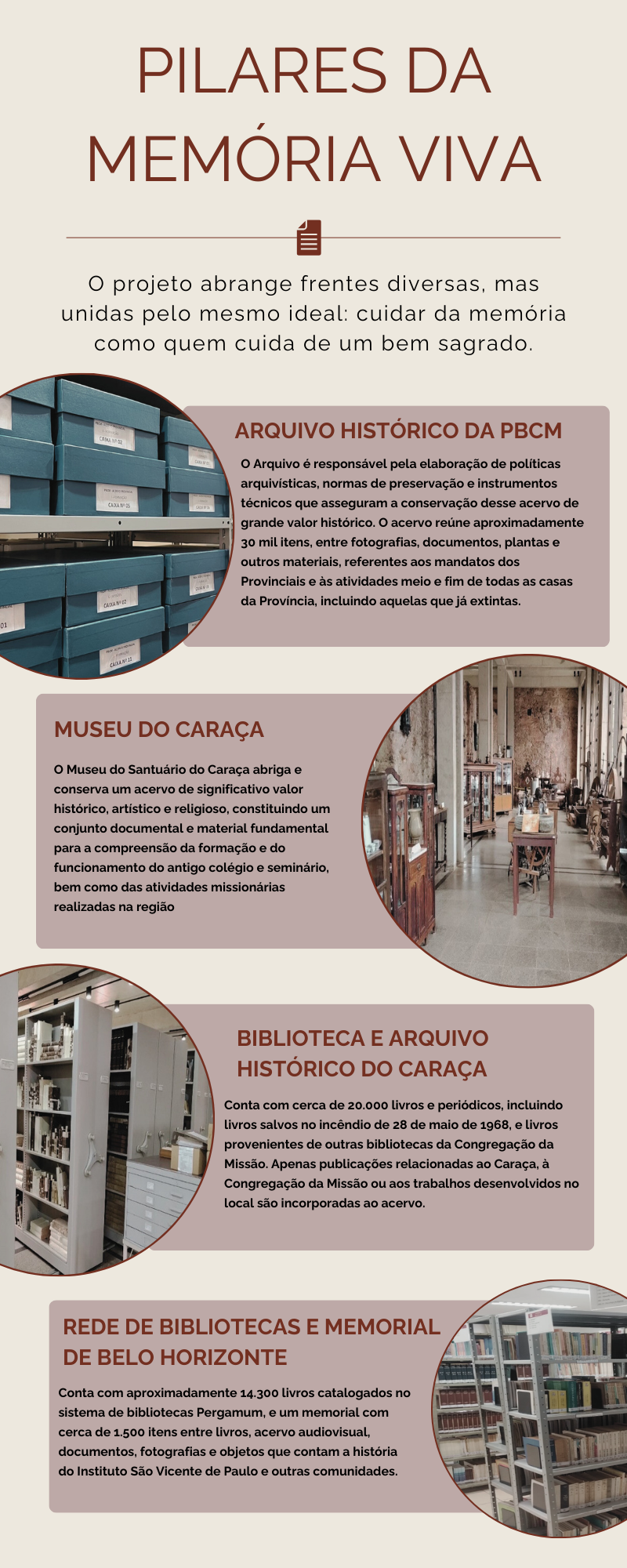 Com o passar do tempo, para uma conservação adequada desses testemunhos, fizeram-se necessários esforços mais sitemáticos e dirigidos para a catalogação e manutenção dos arquivos e objetos que compõem a memória da Congregação. Desse impulso, nasceu o Centro de Memória Vicentino, criado para assegurar que o legado daqueles que se dedicaram ao Evangelho e aos pobres possa continuar a iluminar as novas gerações.