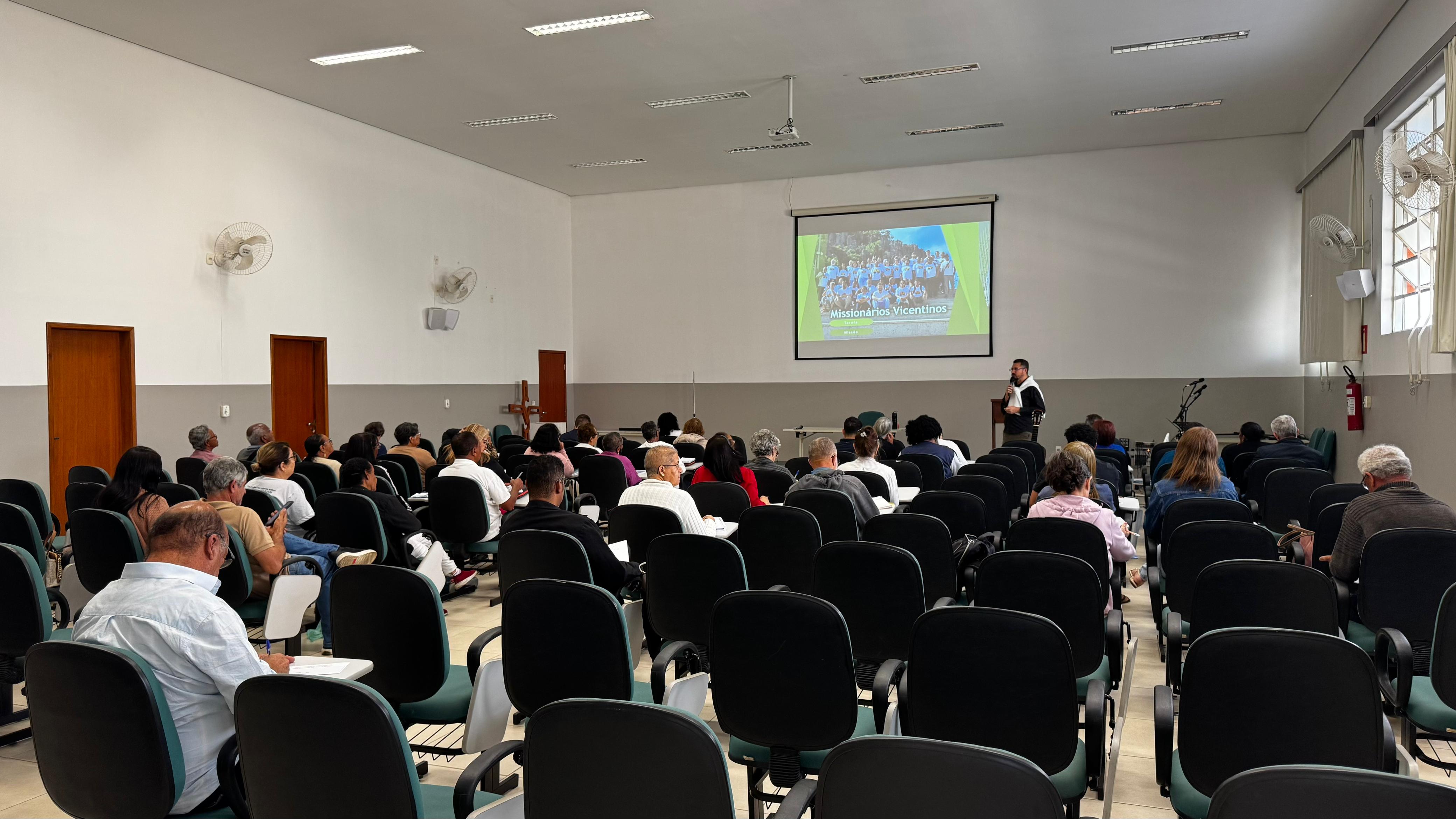 Pe. Cleber Fábio Teodósio, CM, coordenador do Departamento de Comunicação da PBCM e Assessor Internacional da Família Vicentina, pelos países de língua portuguesa, apresentou as bases das missões populares vicentinas, em sintonia com a temática principal do encontro: "Missionários vicentinos, chamados e enviados a evangelizar com esperança".